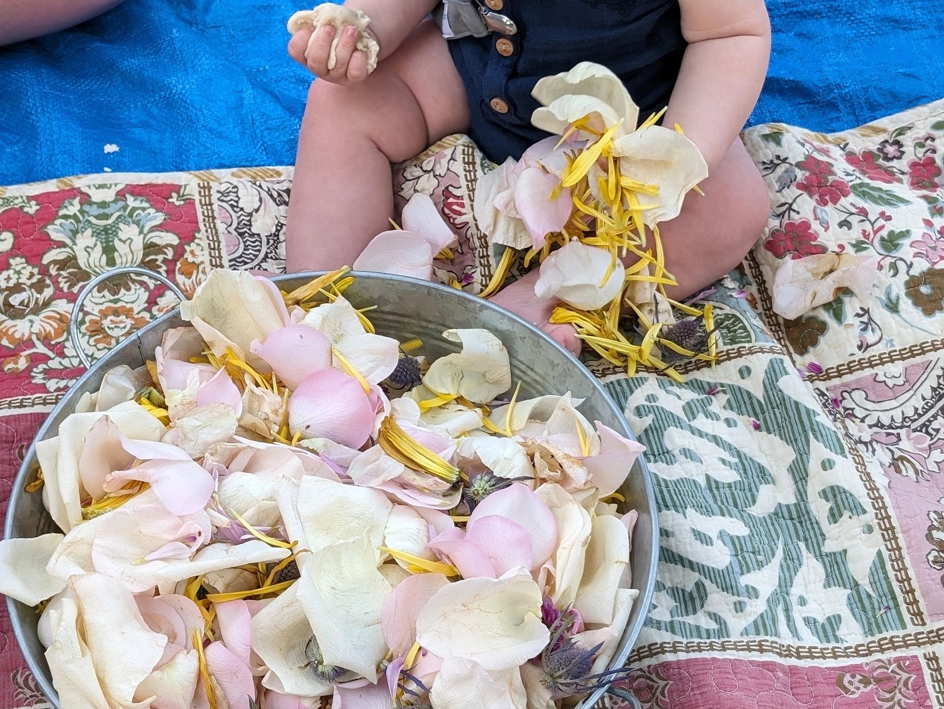 Make sure YOU and your Little Learner are in comfortable weather-appropriate layers that can get wet and or muddy. For walking babies, rain boots or other closed-toe shoes that can get wet and or muddy. Bring a water bottle to stay hydrated. An extra change of clothes, bug spray, sunscreen.