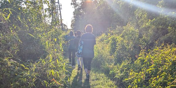 Something to sit on (towel, blanket, etc), pen and paper, a water bottle (to stay hydrated). Seasonally appropriate clothing. We recommend applying sunscreen and bug spray before arriving. Comfortable walking/hiking shoes, or rain boots that can get wet and or muddy.
